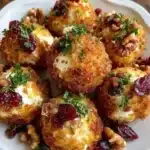 Delicious cheese balls made with cream cheese, cranberries, and walnuts, perfect for holiday gatherings.