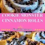 Delicious Cookie Monster Cinnamon Rolls topped with cookie dough and frosting