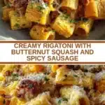 A comforting dish of creamy rigatoni tossed with roasted butternut squash and spicy sausage, perfect for chilly evenings.