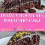 Delicious Dubai Chocolate Pistachio Cake with chocolate frosting and pistachio garnish.
