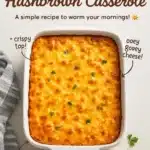 A comforting egg casserole with crispy hashbrowns, sautéed mushrooms, and melted cheese, perfect for breakfast or brunch.
