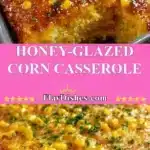 Delicious honey-glazed corn casserole served in a dish