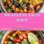 If you’re like me, you understand that cooking isn’t just about filling bellies; it’s about sharing moments, creating memories, and bringing people together. This Meatless Taco Soup has a way of doing just that. It embodies warmth, comfort, and love, all swirled together in a bowl. Trust me, you’ll want to make this again and again, adding your own little twists along the way. I can’t wait for you to try it, so gather your ingredients and let the cooking begin! Embrace the joy of creating, sharing, and savoring every delicious bite.