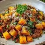 I remember walking home, the squash tucked safely in my basket, dreaming of how I would transform it into something special. My grandmother always said that food should warm the belly and lift the spirit, and I felt that same warmth as I sliced through the butternut squash, releasing its sweet fragrance. It reminded me of family gatherings where laughter echoed around the table, and flavors danced like the children playing in the yard. That day, as I roasted the squash until it caramelized and tossed it with the ground turkey, I felt like I was not just preparing a meal but crafting a memory—a nourishing hug for the soul.