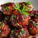 This recipe quickly became a staple at family gatherings and holiday celebrations. Friends and family alike fell in love with the intriguing combination of flavors, transforming every meal into a memorable occasion. Whether served as an appetizer or a main dish, Savory Baked Cranberry-Glazed Meatballs with Fresh Herbs adapt beautifully, making them a versatile addition to any table.