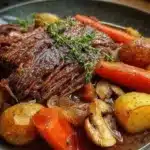 A comforting and nostalgic Slow Cooker Pot Roast, filled with rich flavors of tender beef, hearty vegetables, and aromatic herbs, perfect for family gatherings.